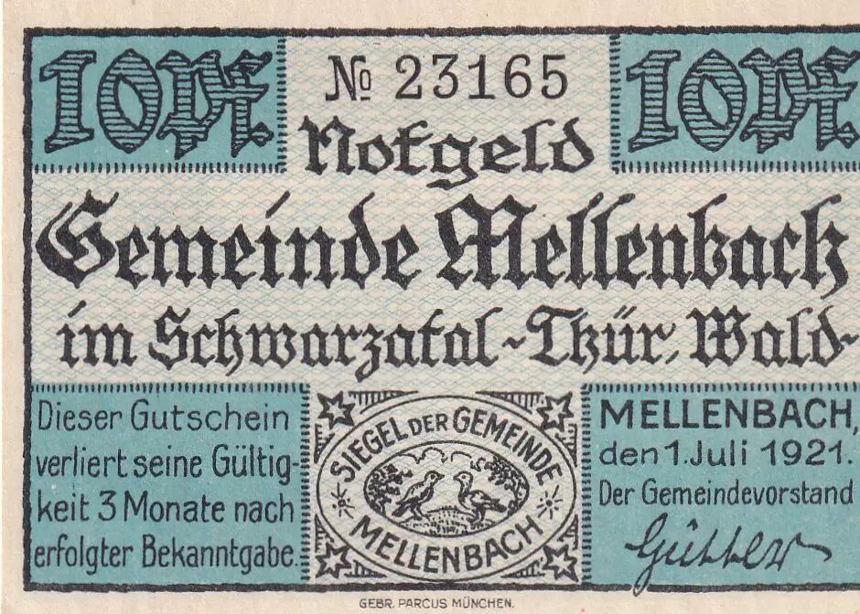 Accueil > Archivage > Allemagne 10 Pfennig - Mellenbach - Notgeld - 1921