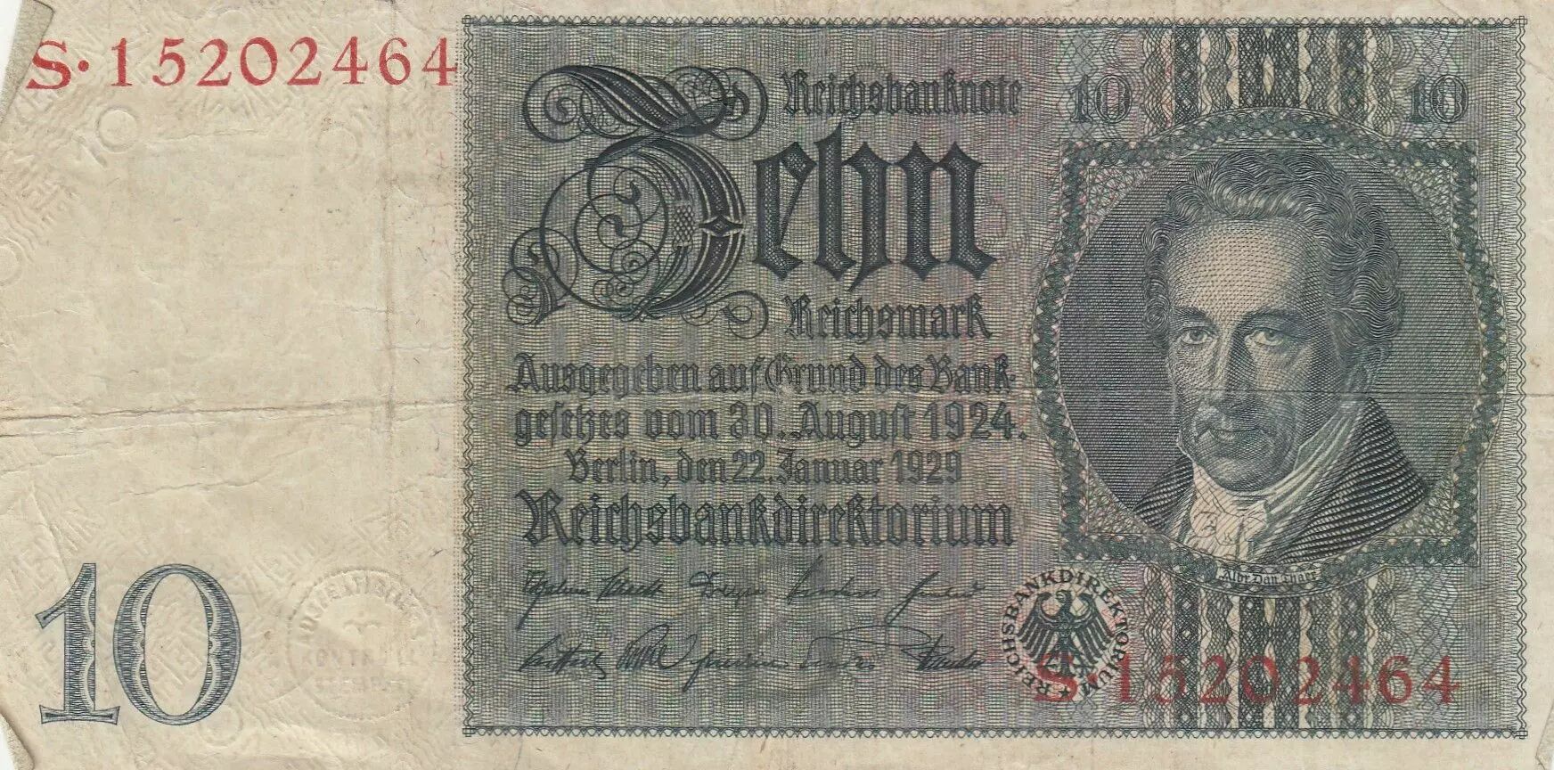 Accueil > Archivage > Allemagne 10 Reichsmark - Albrecht D. Thaer - Série S - 1929 - P.180a