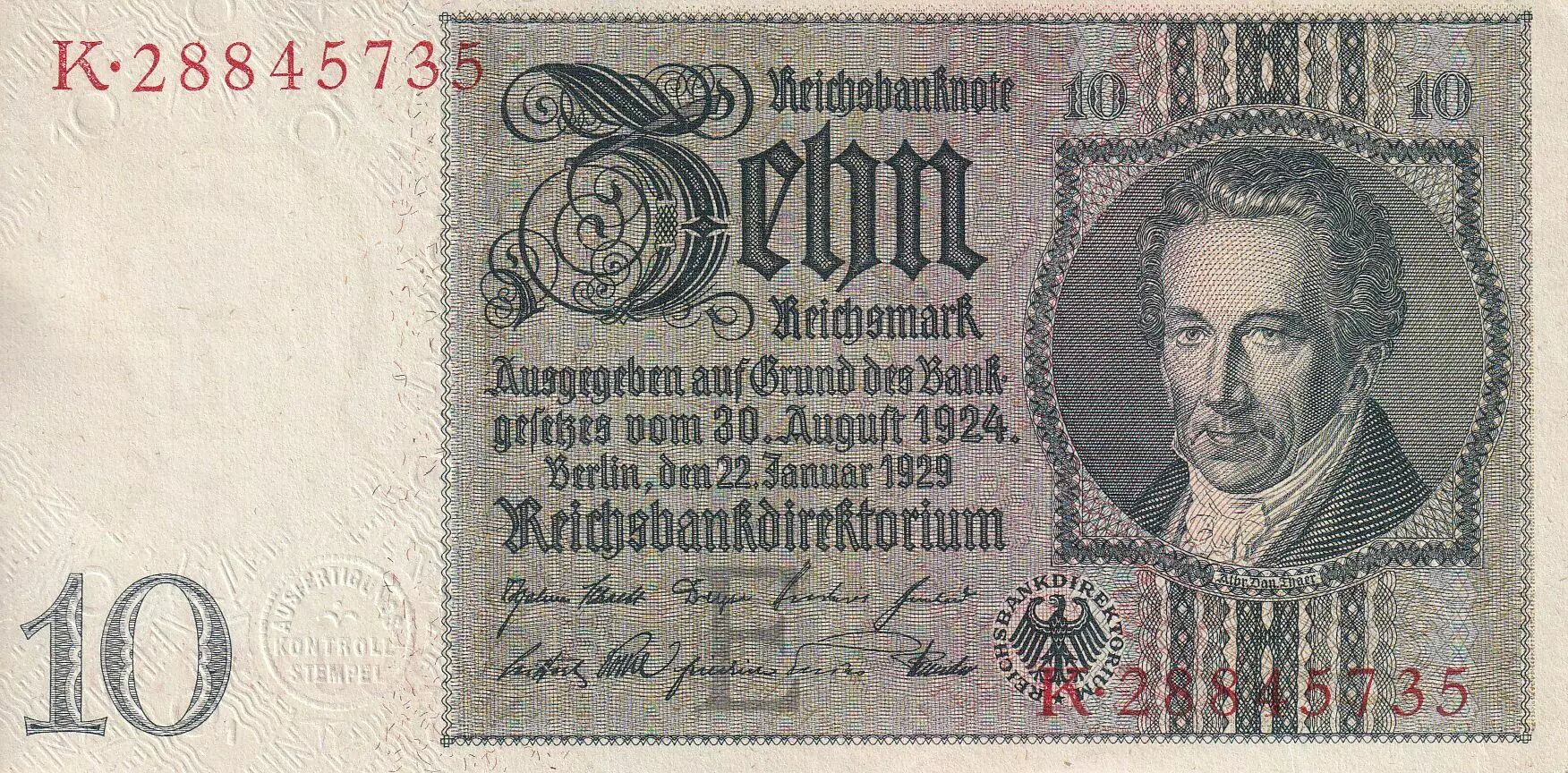 Accueil > Archivage > Allemagne 10 Reichsmark - Albrecht Duhrer - 1929 - Série K - P.180a