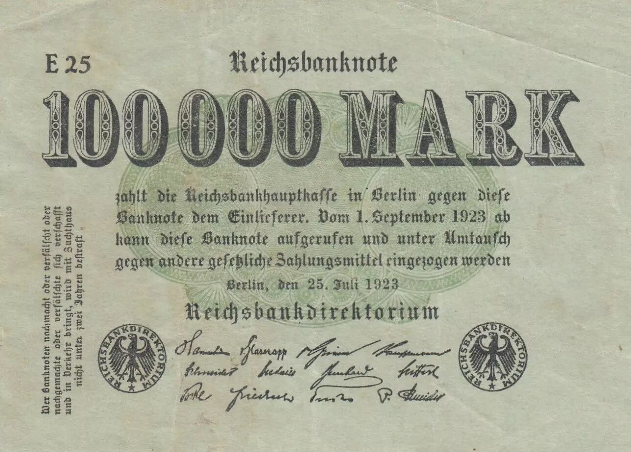 Billet Allemagne 100 000 Mark - Reichbanknote - Série E.25 - 1923 - P.91a