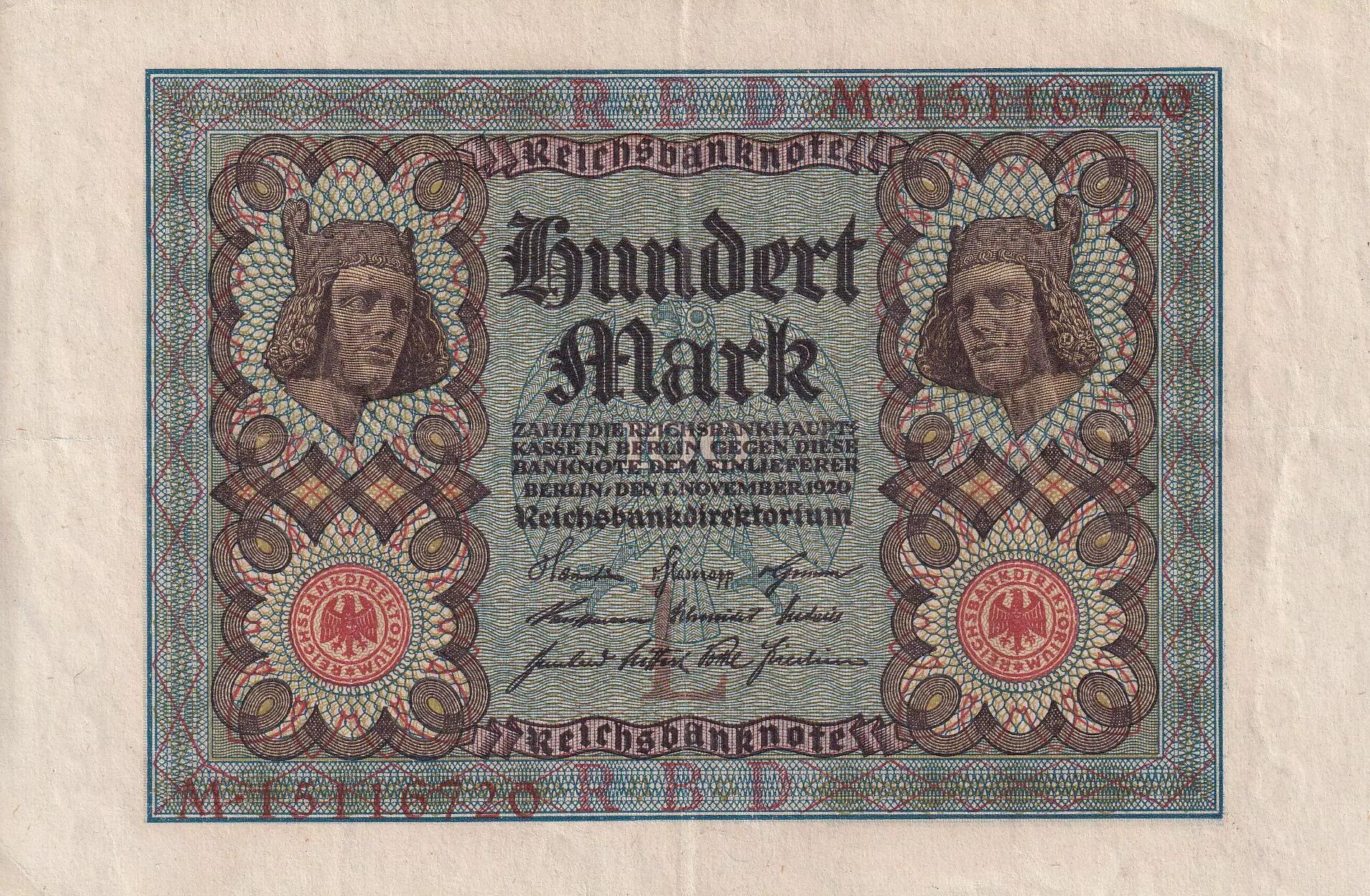 Accueil > Archivage > Allemagne 100 Mark - Cavalier de Bamberg - 1920 - Série M - SUP - P.69b