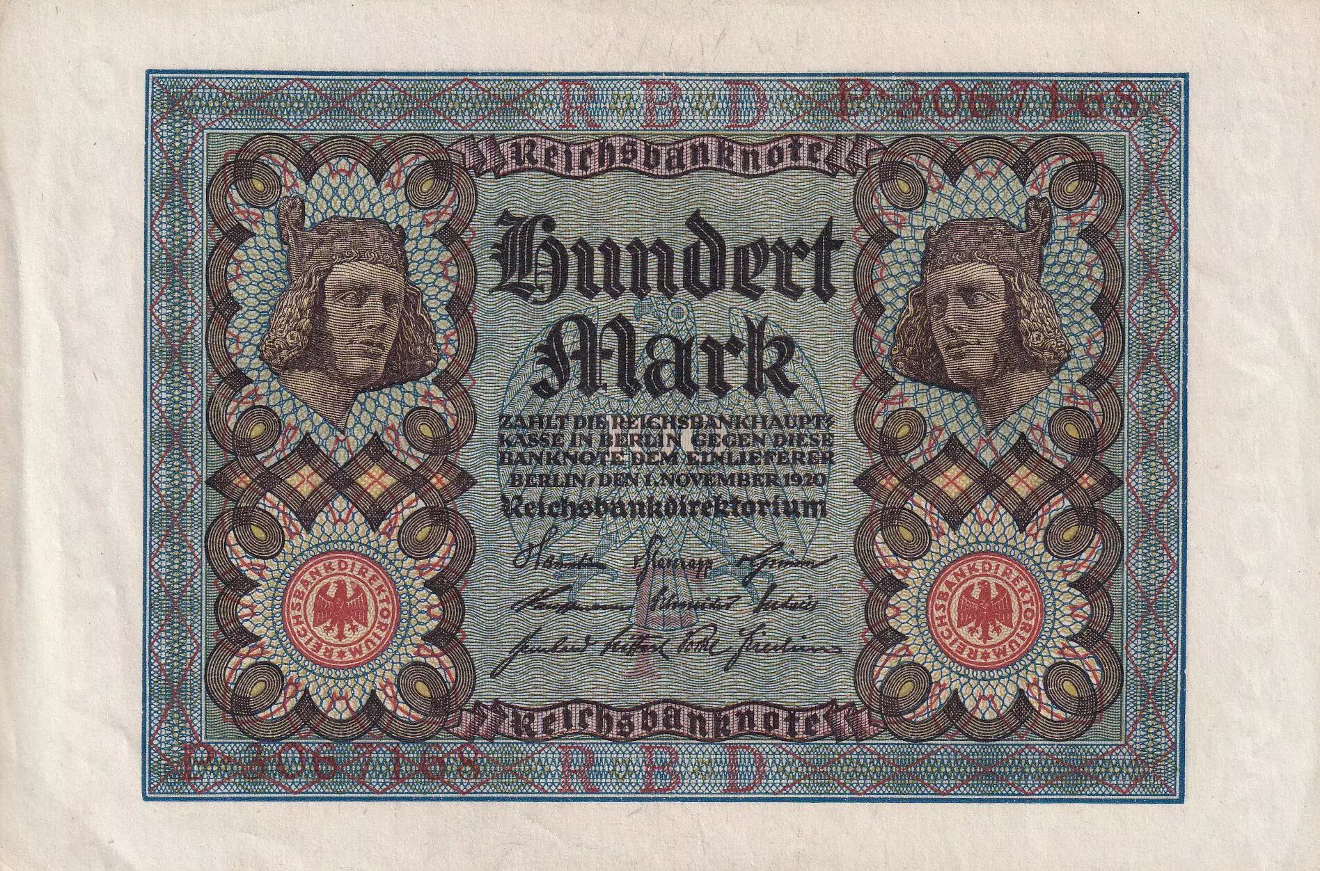 Billet Allemagne 100 Mark - Cavalier de Bamberg - 1920 - Série P - SUP+ - P.69b