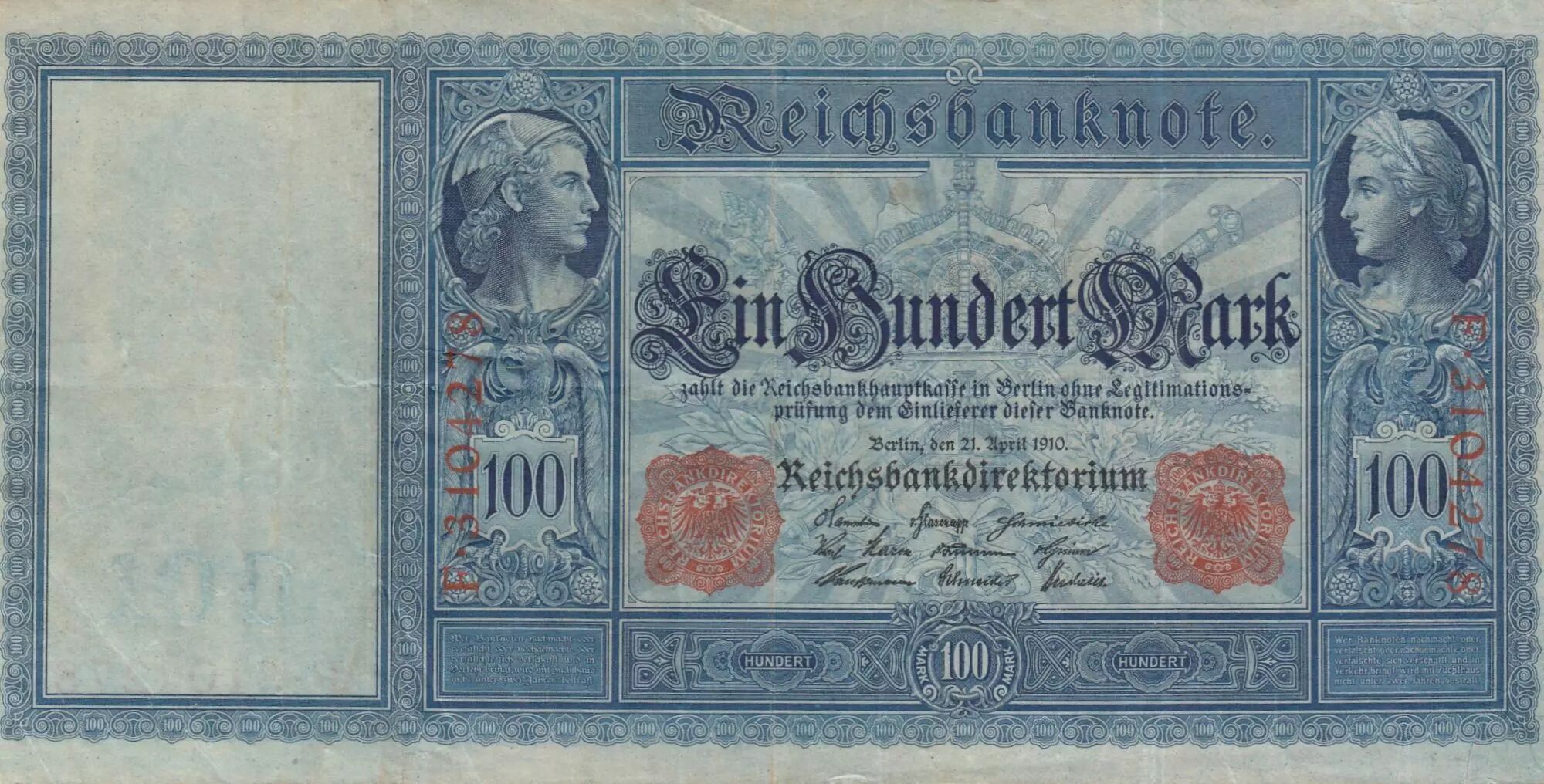 Billet Allemagne 100 Mark - Mercure et Cérès - 21-04-1910 - Série F