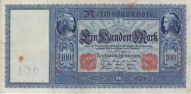 Accueil > Archivage > Allemagne 100 Marks Allemagne - Mercure et Cérès - Millésimes variés (1909-1910) - Numérotation rouge