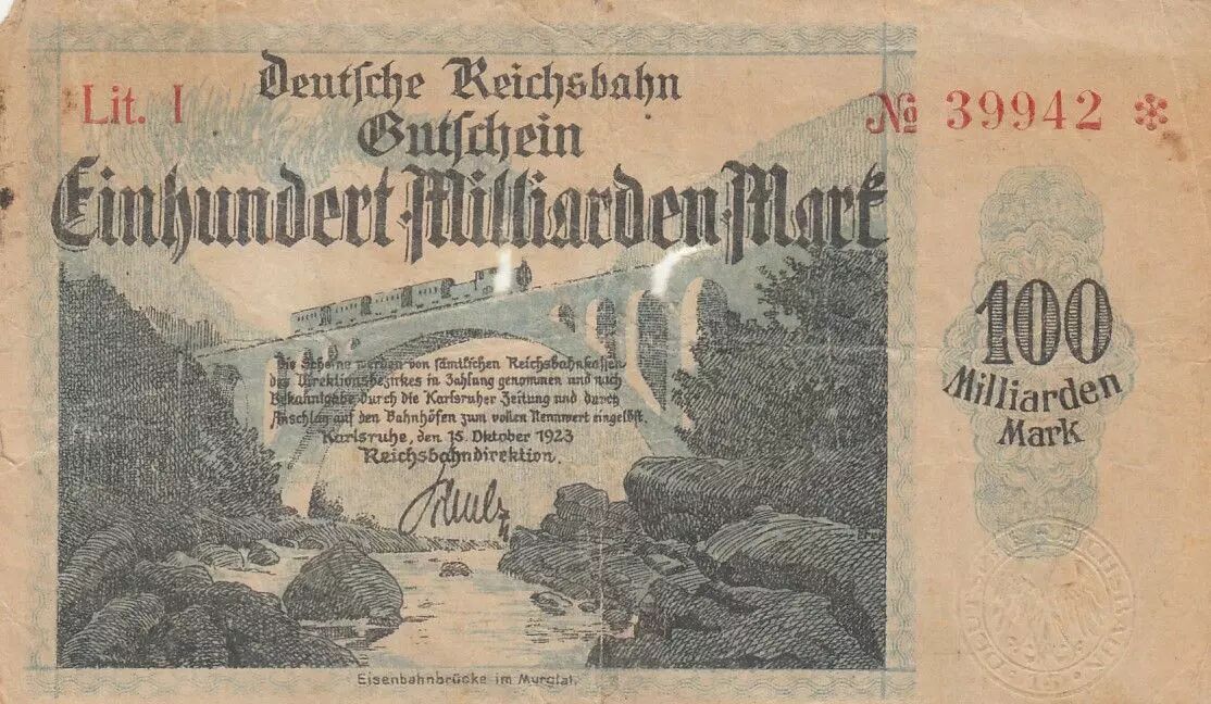 Billet Allemagne 100 milliards de Mark - Ville de Karlsruhe - République de Weiman - 1923