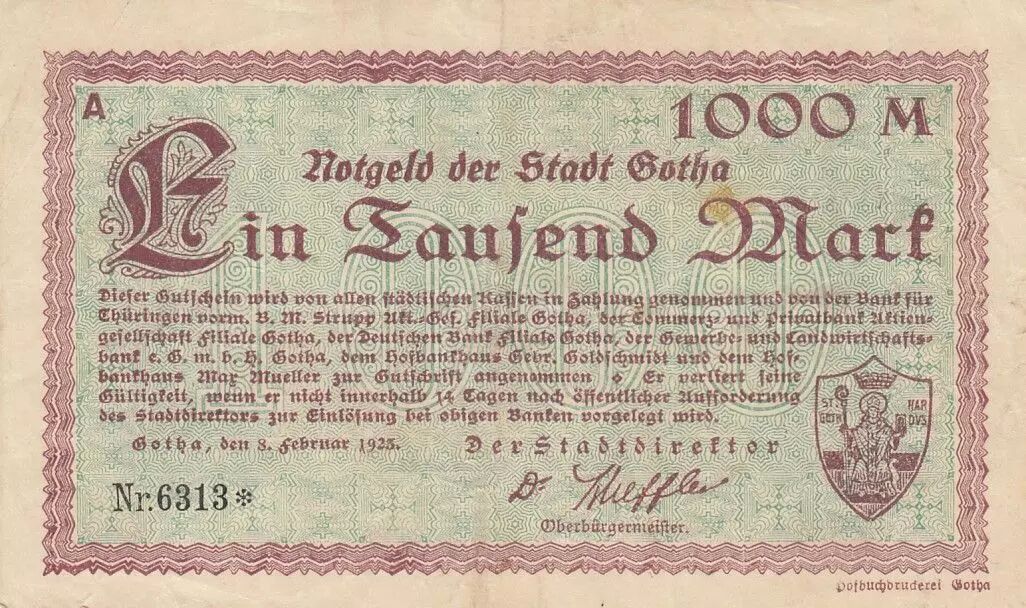 Billet Allemagne 1000 Mark - Notgeld - Ville de Gotha - 1923 - Numéro 6313