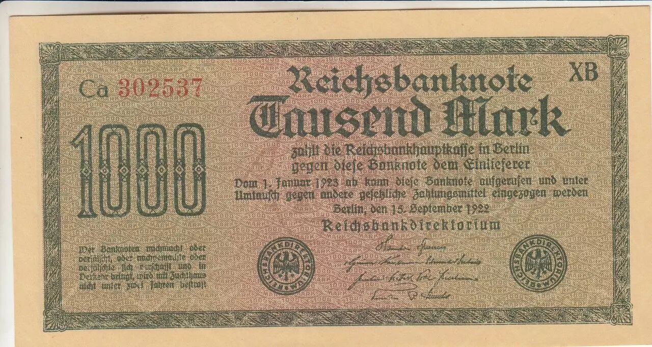 Billet Allemagne 1000 Mark Vert, lilas - 1922 - série ca-xb