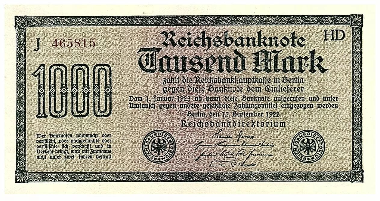 Billet Allemagne 1000 Mark Vert, lilas - 1922 - série J HD