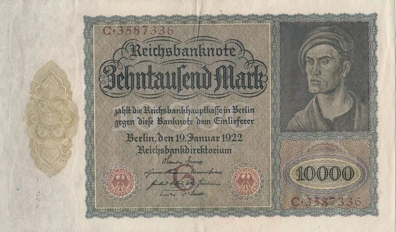 Billet Allemagne 10000 Mark - Portrait homme par Durer - 1922 - Série C lettre G