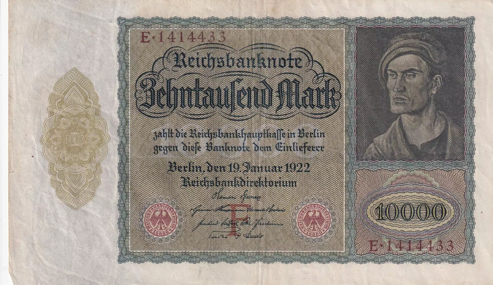 Billet Allemagne 10000 Mark - Portrait homme par Durer - 1922 - Série F lettre E