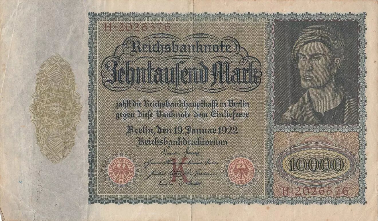Billet Allemagne 10000 Mark - Portrait homme par Durer - 1922 - Série H lettre K