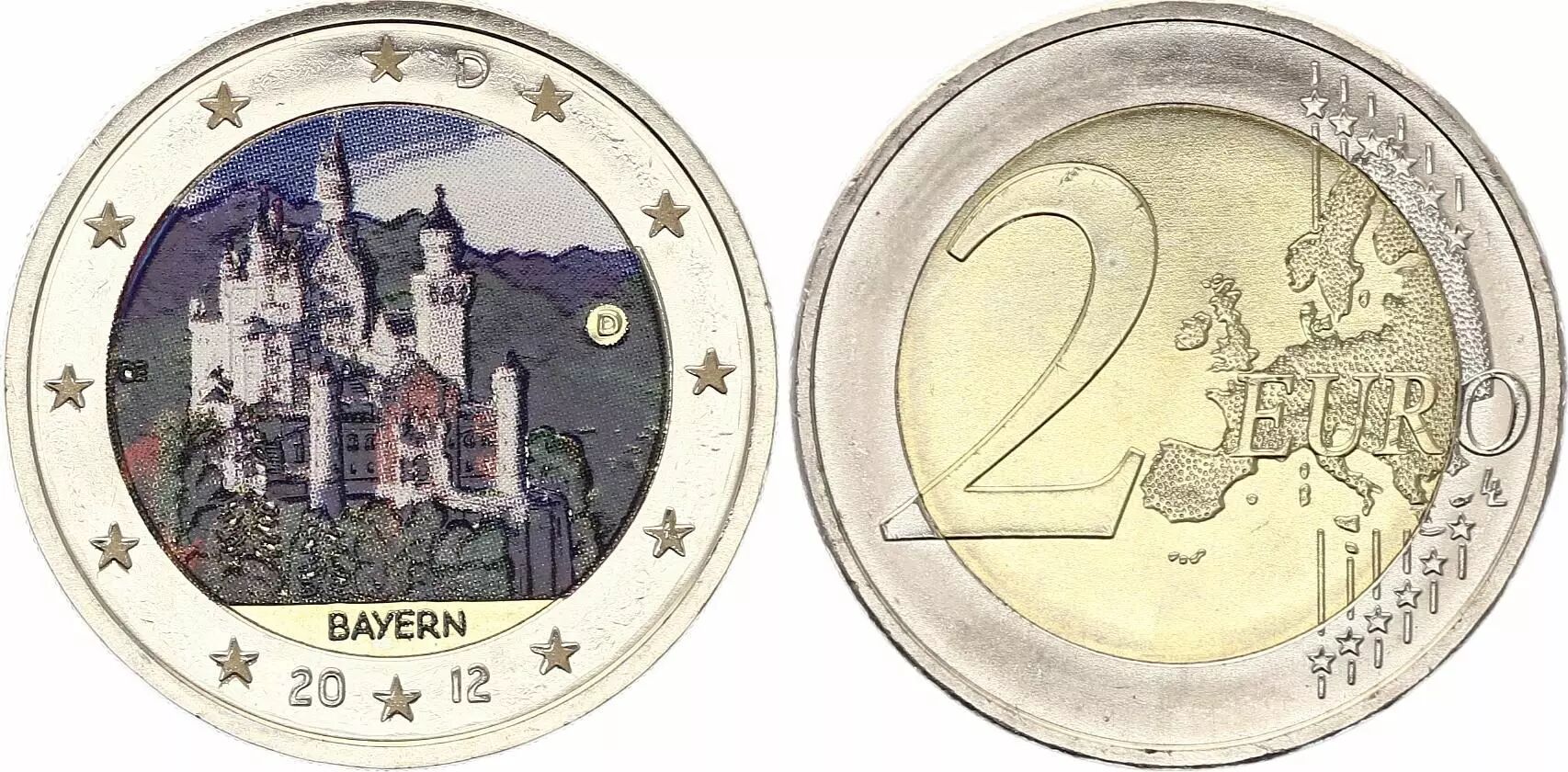Pièce Allemagne 2 Euros - Bavière - Colorisée - D (Munich) - 2012