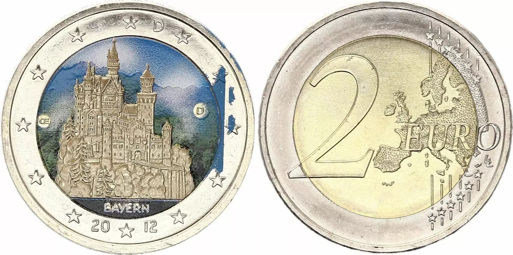 Pièce Allemagne 2 Euros - Bavière - Colorisée - D (Munich) - 2012
