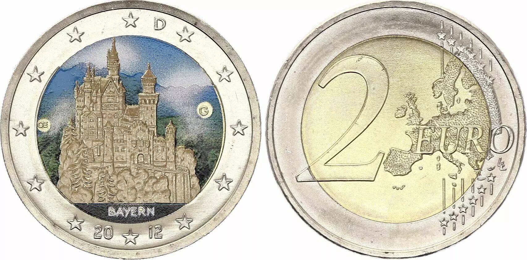 Pièce Allemagne 2 Euros - Bavière - Colorisée - G (Karlsruhe) - 2012