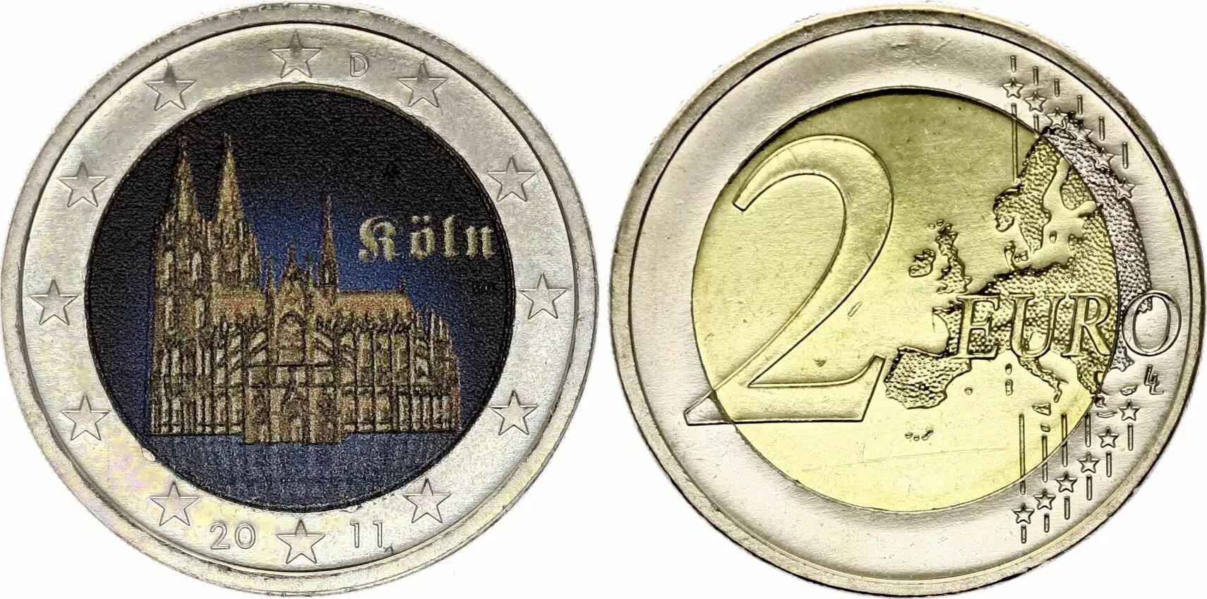 Pièce Allemagne 2 Euros - Cathédrale de Cologne - Colorisée - A Berlin - 2011