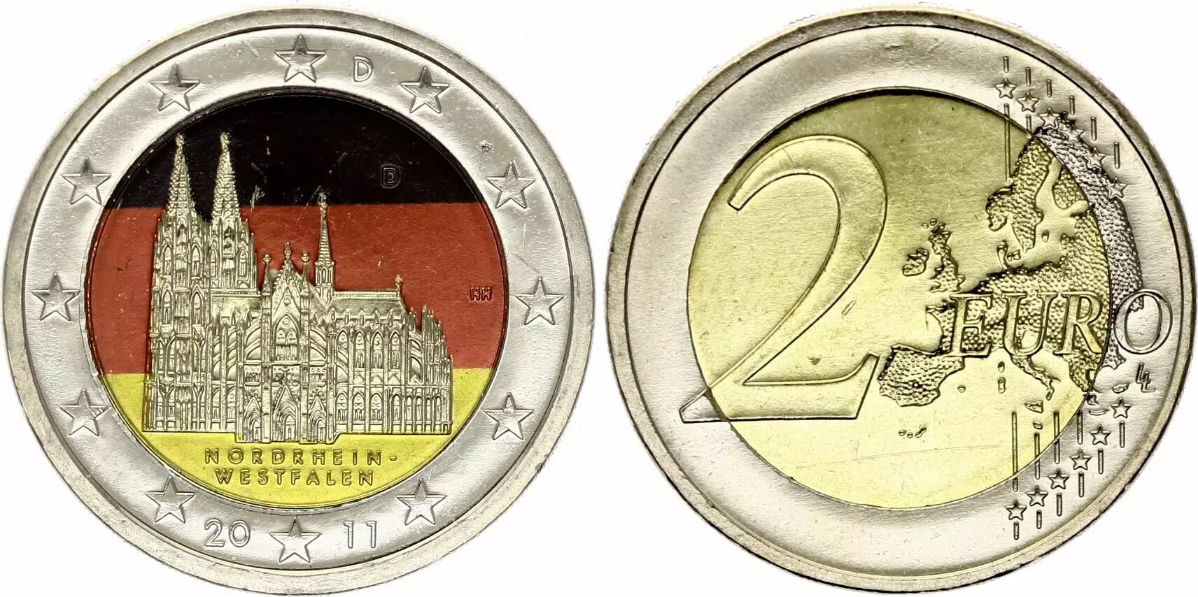 Pièce Allemagne 2 Euros - Cathédrale de Cologne - Colorisée - D Munich - 2011