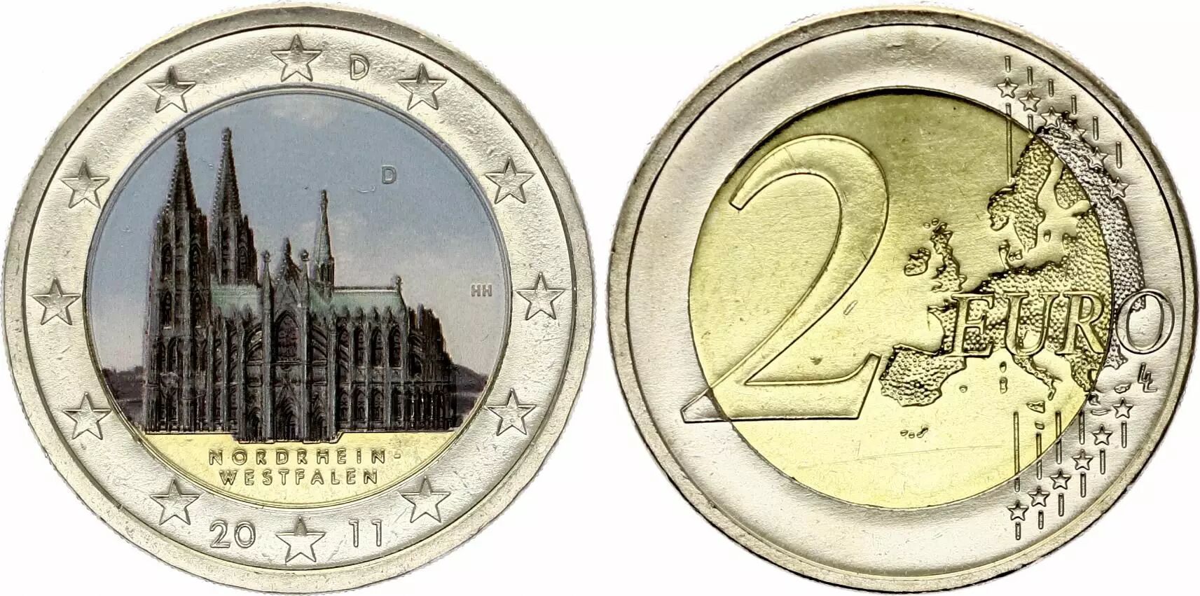 Pièce Allemagne 2 Euros - Cathédrale de Cologne - Colorisée - D Munich - 2011