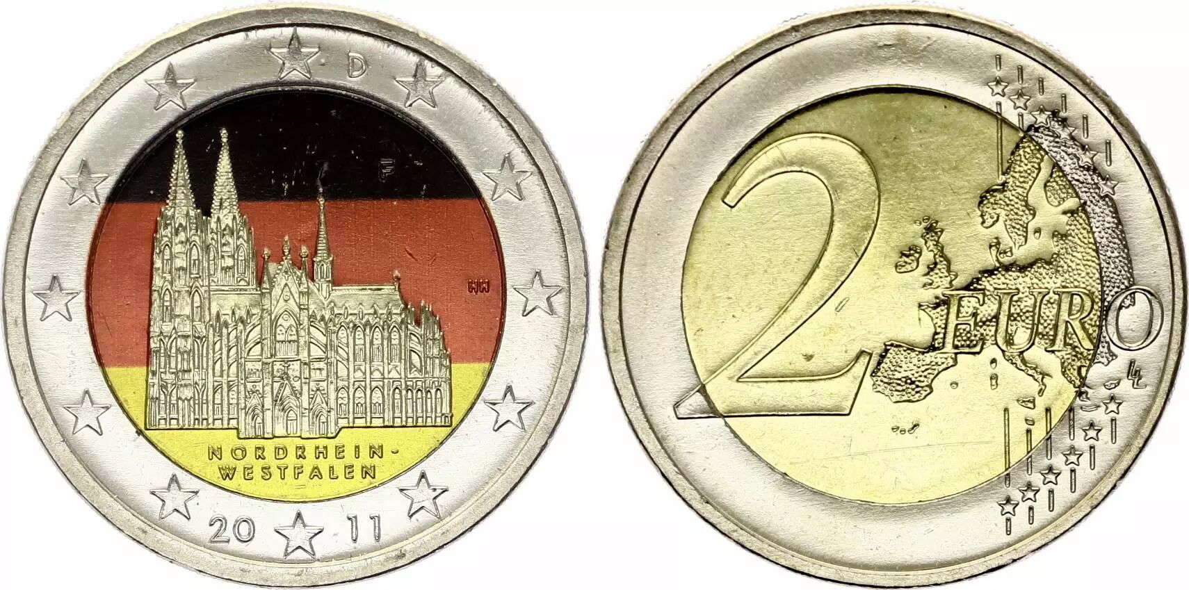 Pièce Allemagne 2 Euros - Cathédrale de Cologne - Colorisée - F Stuttgart - 2011