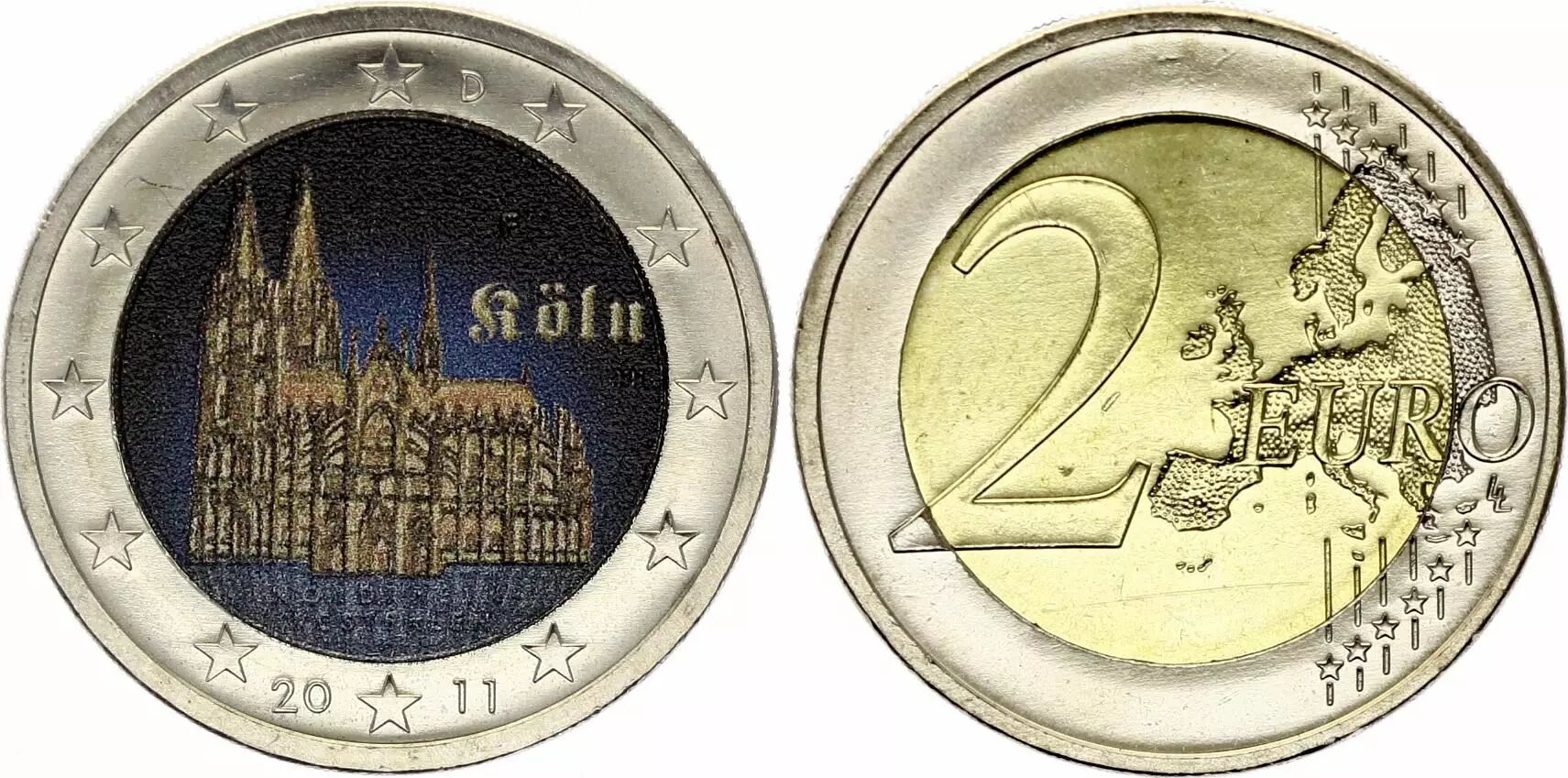 Pièce Allemagne 2 Euros - Cathédrale de Cologne - Colorisée - F Stuttgart - 2011