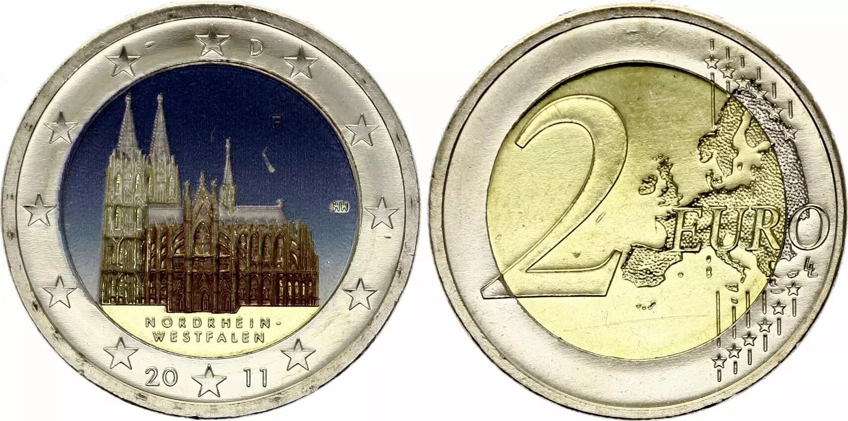 Accueil > Monnaies du monde > Monnaies d'Europe > Allemagne - Etats Allemands > Allemagne 2 Euros - Cathédrale de Cologne - Colorisée - F Stuttgart - 2011