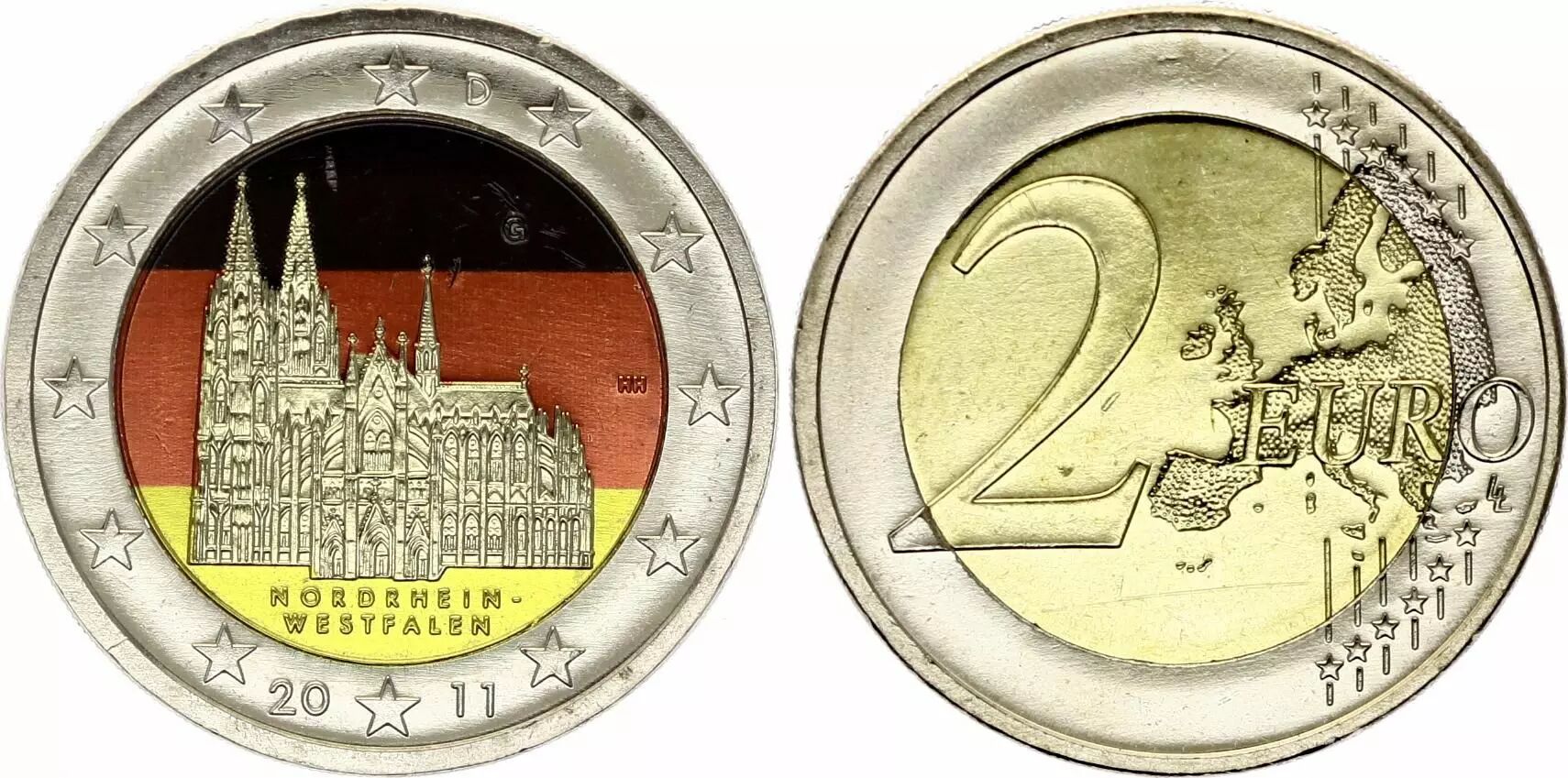 Pièce Allemagne 2 Euros - Cathédrale de Cologne - Colorisée - G Karlsruhe - 2011