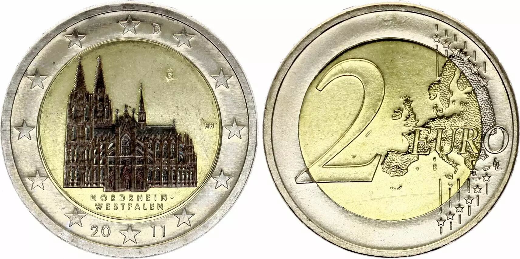 Pièce Allemagne 2 Euros - Cathédrale de Cologne - Colorisée - G Karlsruhe - 2011