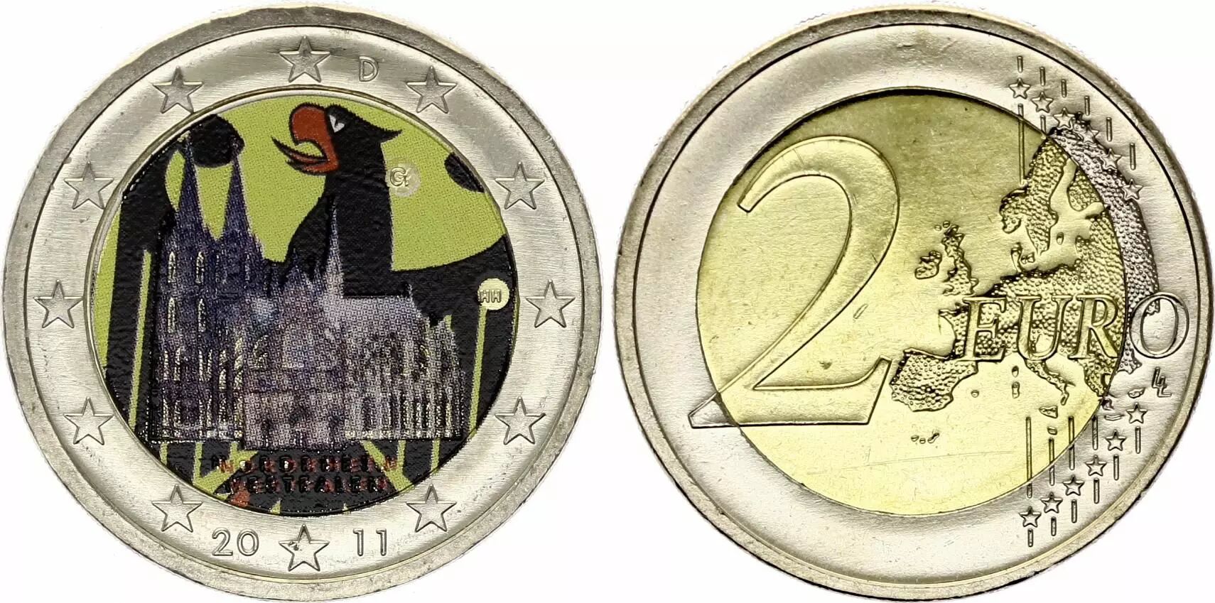 Pièce Allemagne 2 Euros - Cathédrale de Cologne - Colorisée - G Karlsruhe - 2011