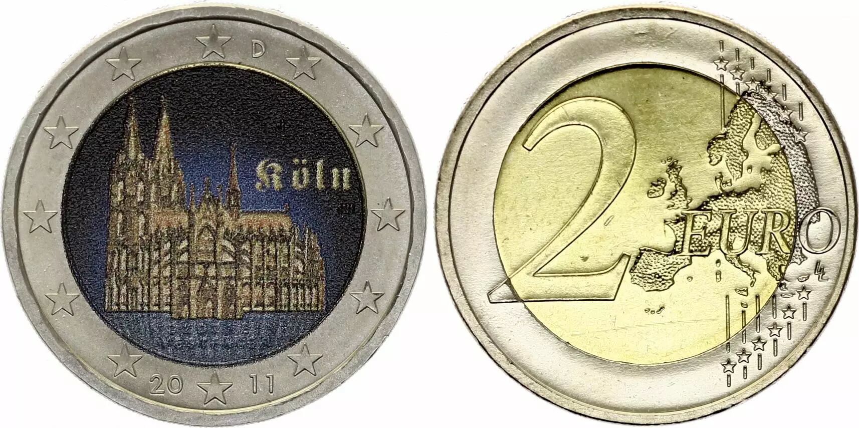 Pièce Allemagne 2 Euros - Cathédrale de Cologne - Colorisée - J Hambourg - 2011