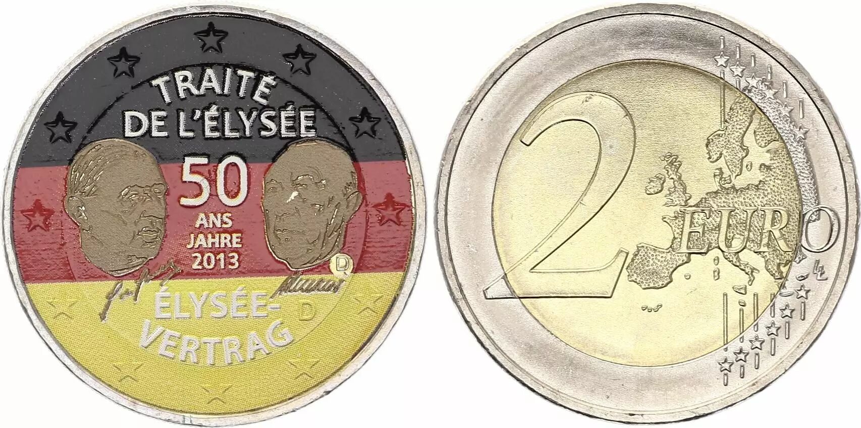 Pièce Allemagne 2 Euros - Traité de l'Elysée - Colorisée - D (Munich) - 2013