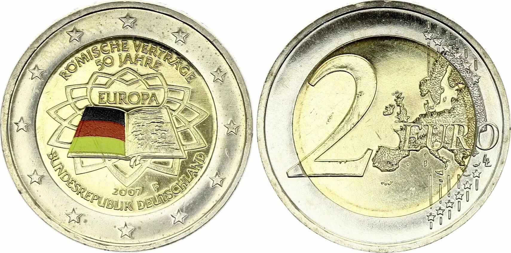 Pièce Allemagne 2 Euros - Traité de Rome - Colorisée - F (Stuttgart) - 2007