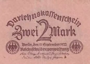 Accueil > Archivage > Allemagne 2 Mark - Darlehens-Kassenschein - 15-09-1922 - Papier rose