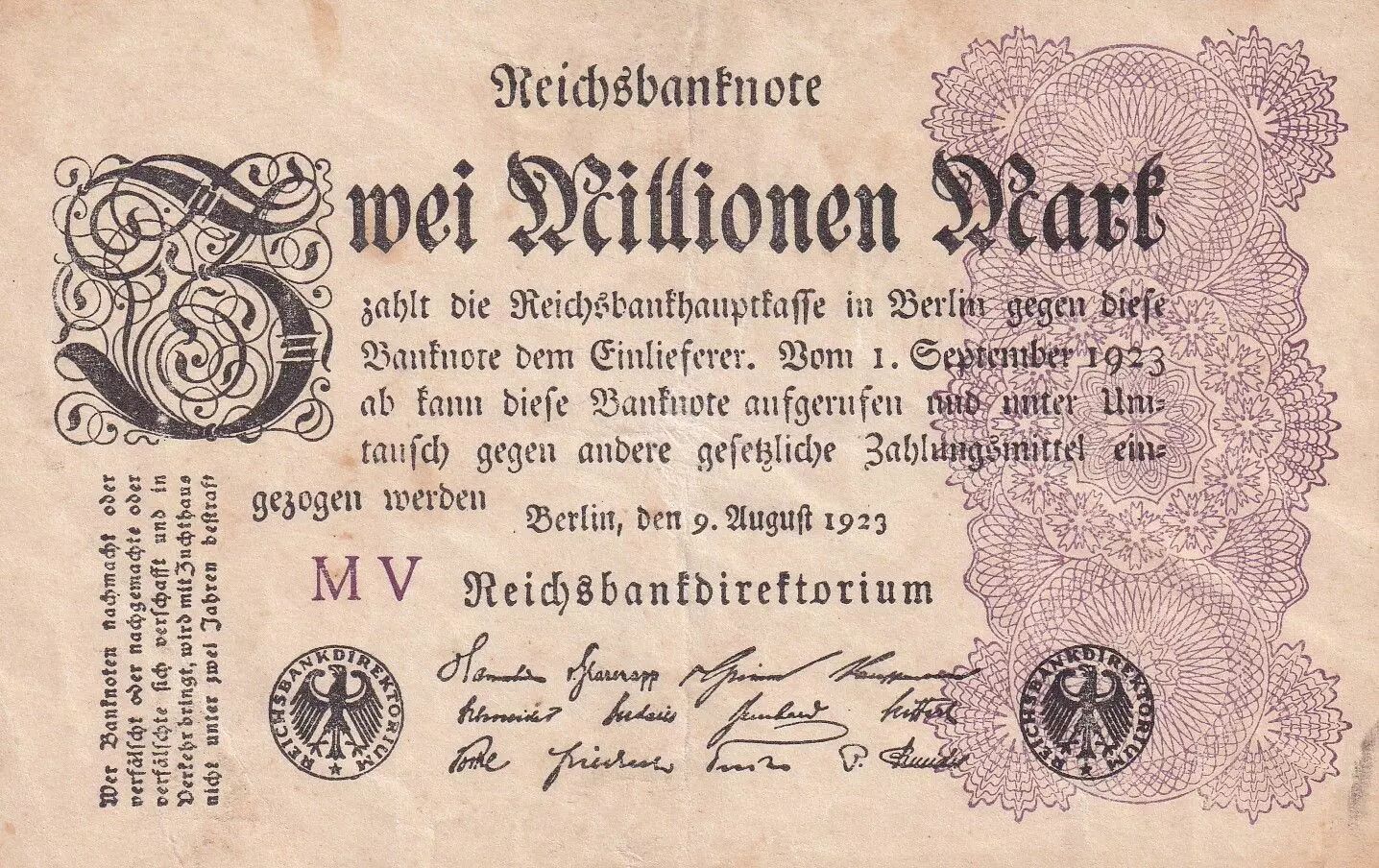 Billet Allemagne 2 Millionen Mark - Noir et Lilas - 09-08-1923 - Série MV