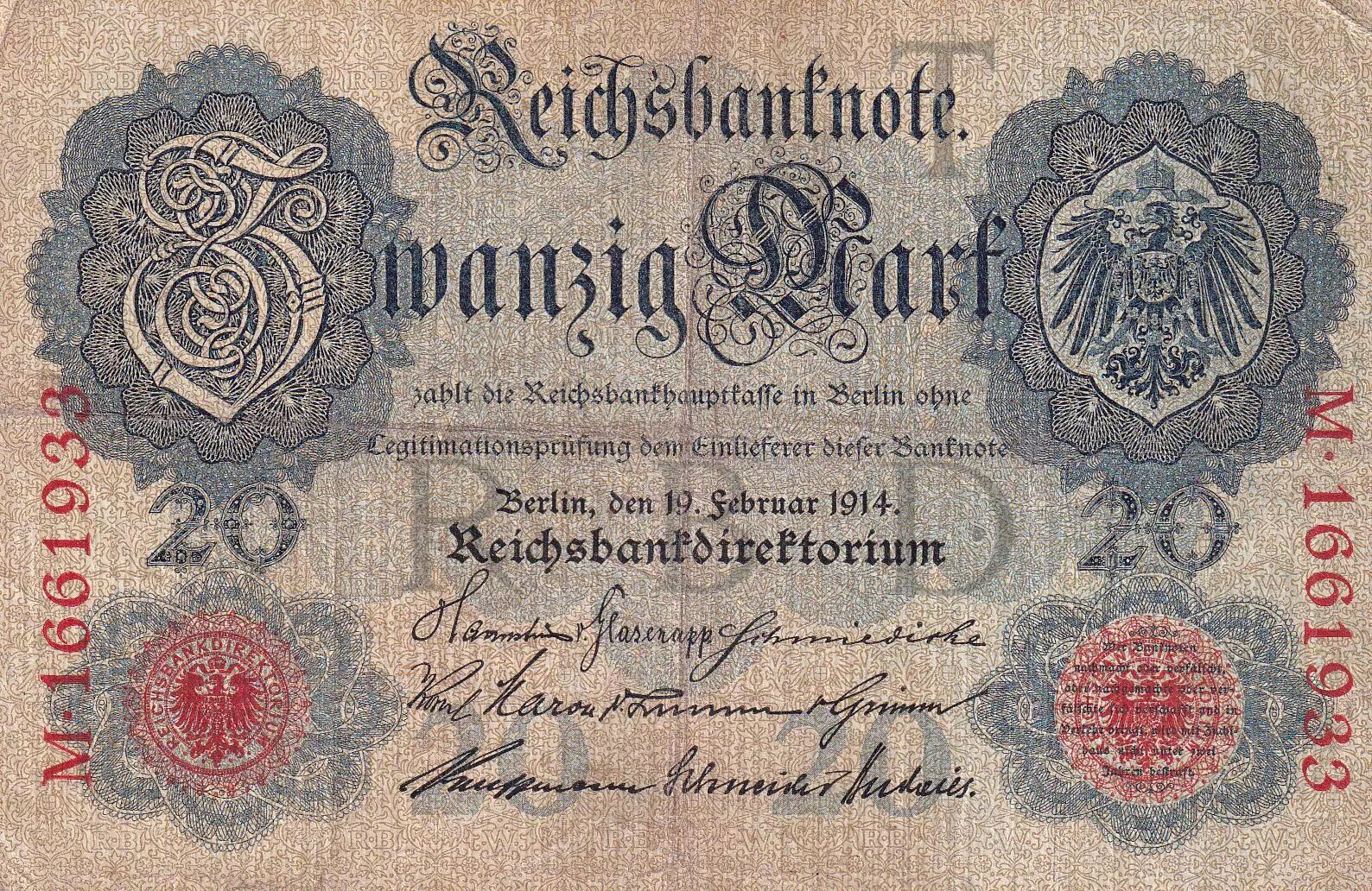 Billet Allemagne 20 Mark - Armoiries - 1914 - Série M - P.46b