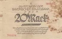Billet Allemagne 20 Mark - Etat de Bayern - Numéro 705234 - 1918
