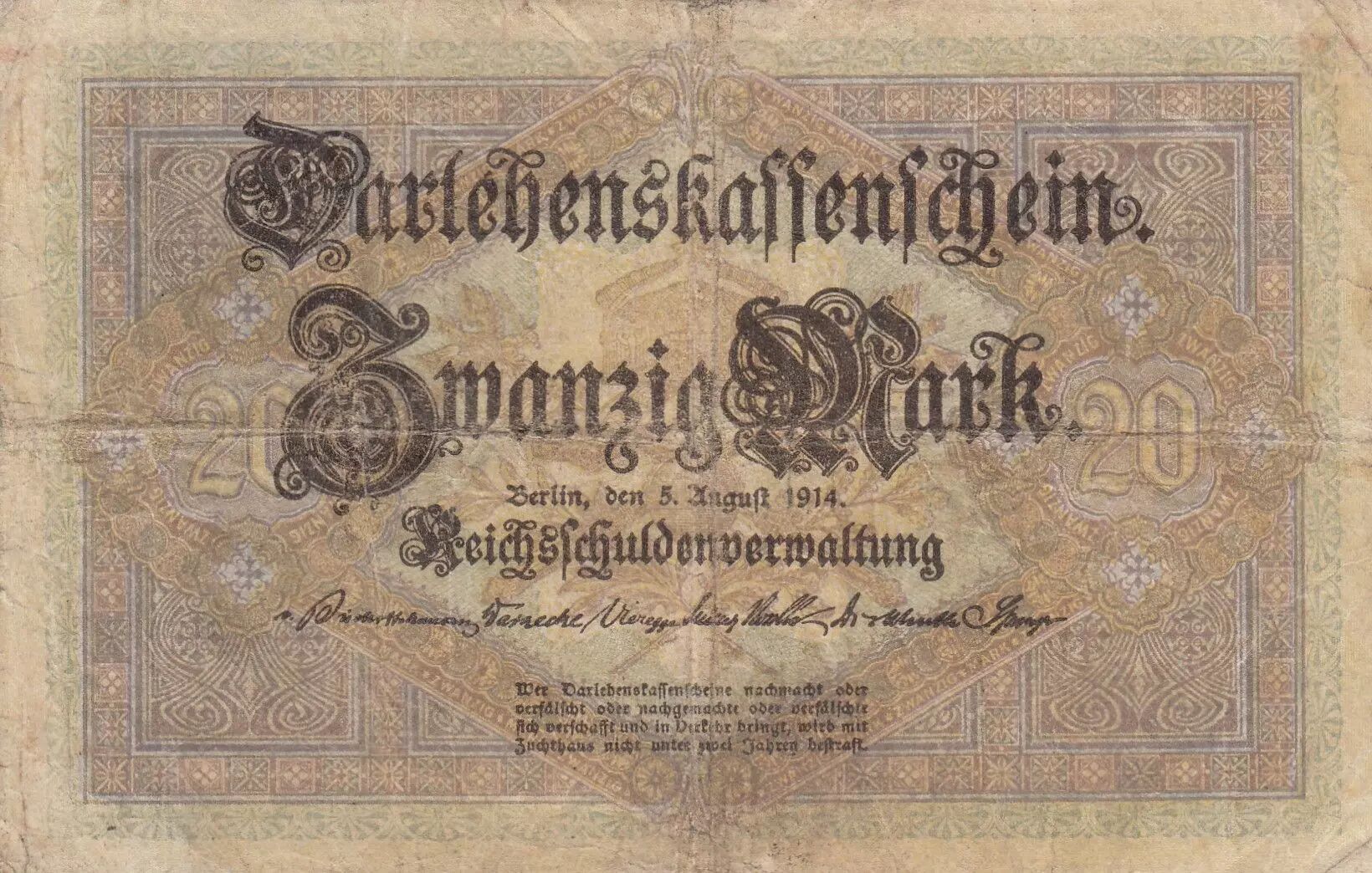 Billet Allemagne 20 Mark - Minerve et Mercure - 1914 - Série N.Nr 7 digit - P.48.b