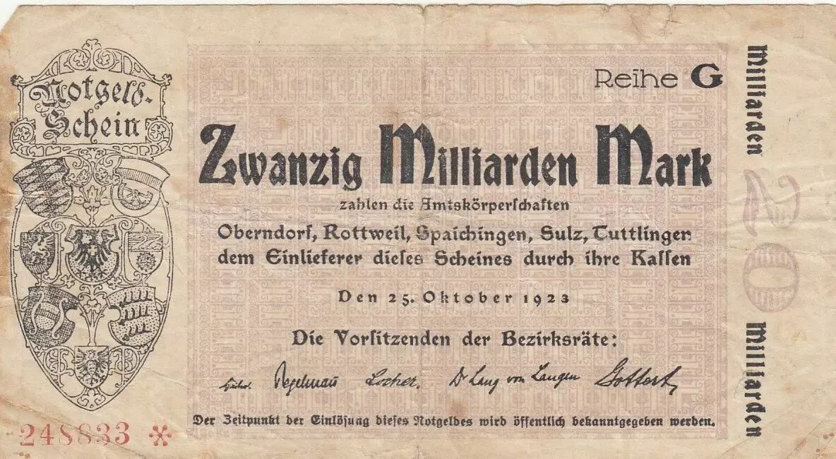 Billet Allemagne 20 milliards mark - Etat de Bezirk - Numéro 248833 - 1923