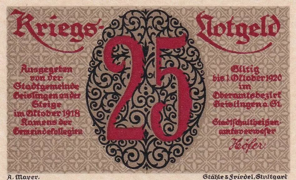 Accueil > Archivage > Allemagne 25 Pfennig - Geislingen - Notgeld - 1918
