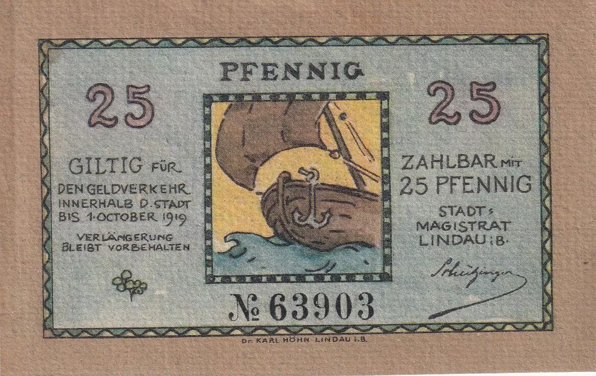 Billet Allemagne 25 Pfennig - Lindau - Notgeld - 1919