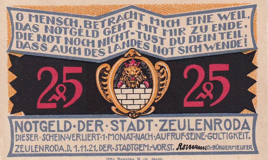 Billet Allemagne 25 Pfennig - Zeulenroda - Notgeld - 1921