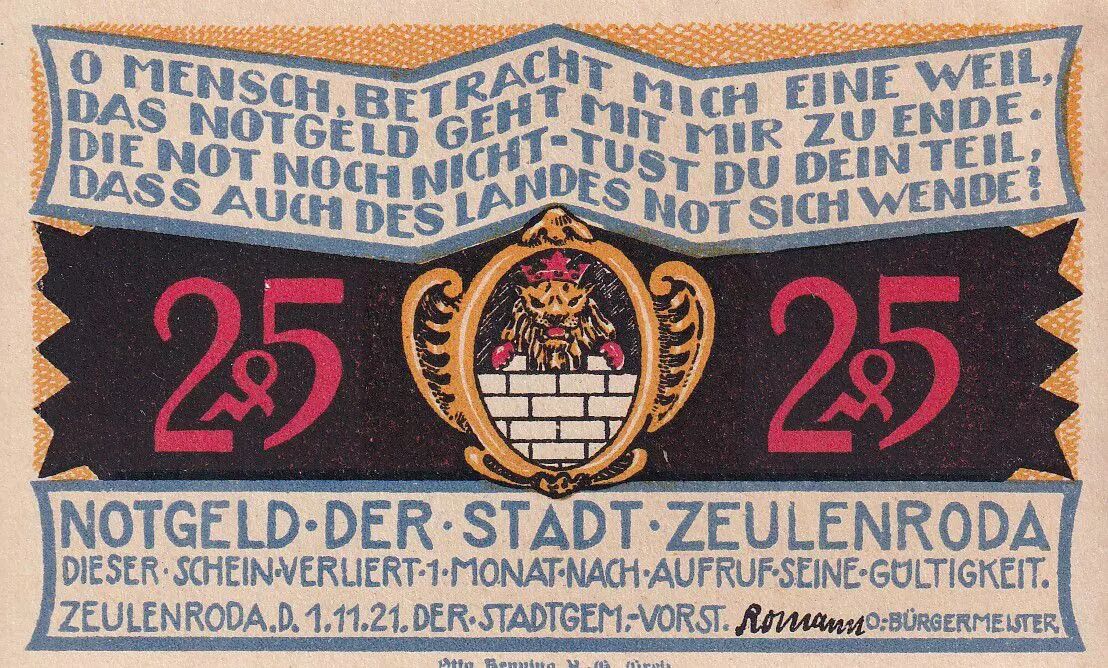 Accueil > Archivage > Allemagne 25 Pfennig - Zeulenroda - Notgeld - 1921