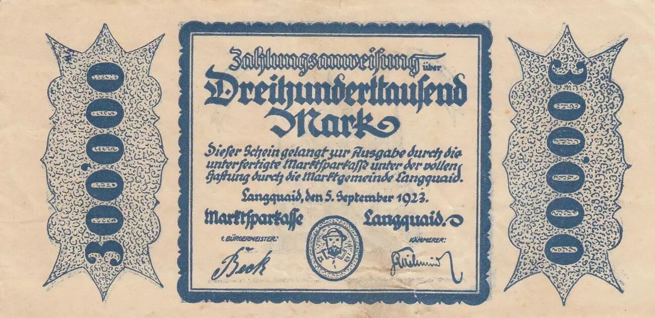Billet Allemagne 300 000 mark - Etat de Langquaid - Numéro 1893 - 1923