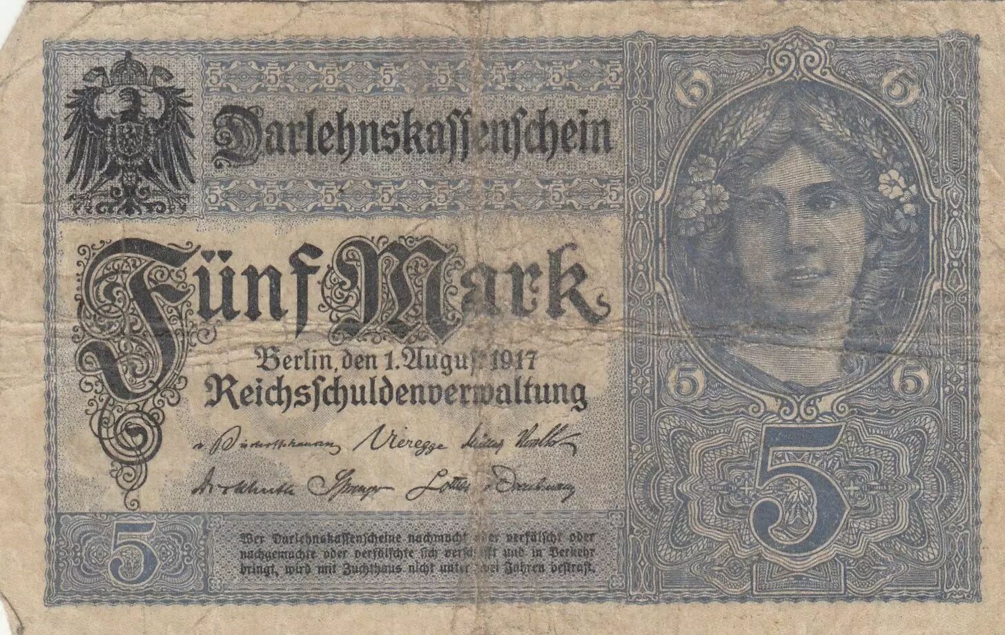 Billet Allemagne 5 Mark - Femme, couronne - 1917 - Série L - P.56b