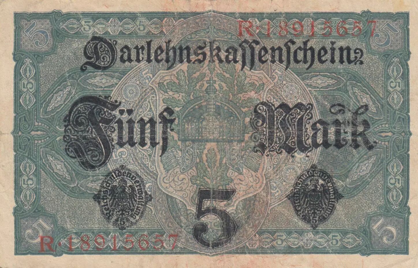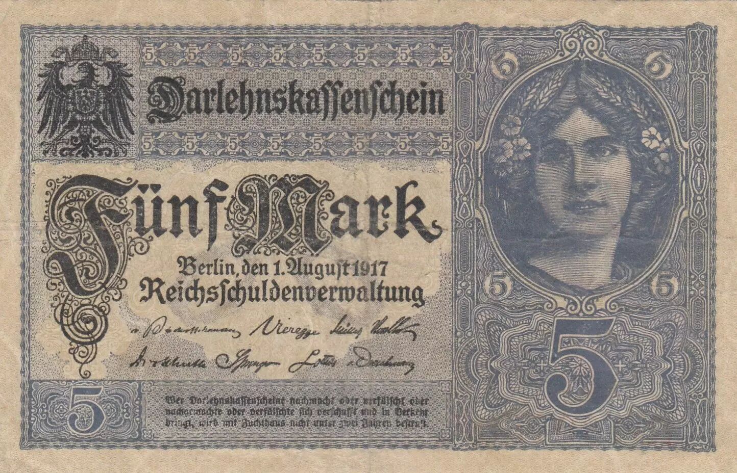 Billet Allemagne 5 Mark - Femme, couronne - 1917 - Série R - P.56b