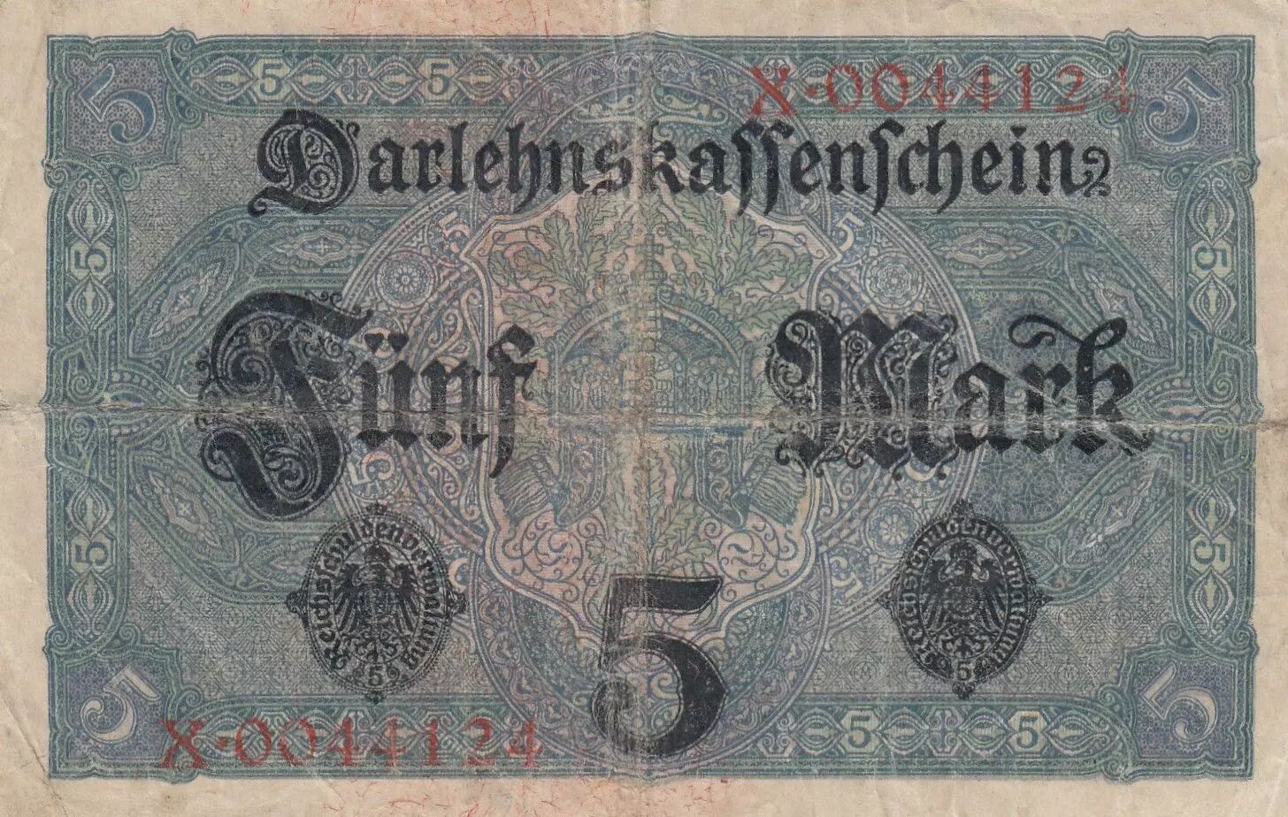 Billet Allemagne 5 Mark - Femme, couronne - 1917 - Série X - P.56b