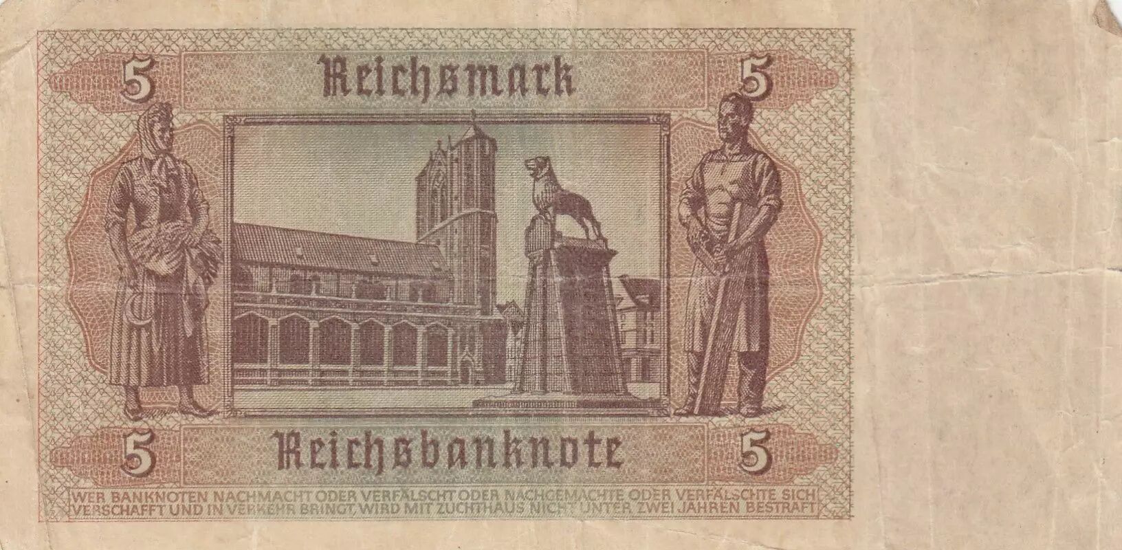Accueil > Archivage > archivage-Billets du Monde > Allemagne 5 Mark - Monument au lion Saxon - Série T - 1942 - P.186a