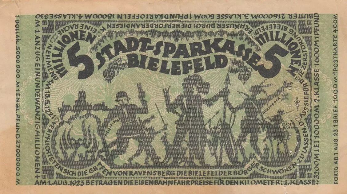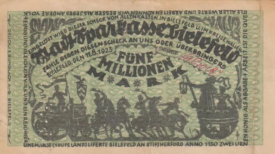 Billet Allemagne 5 Millionen Mark - Etat de Bielefeld - 11-08-1923