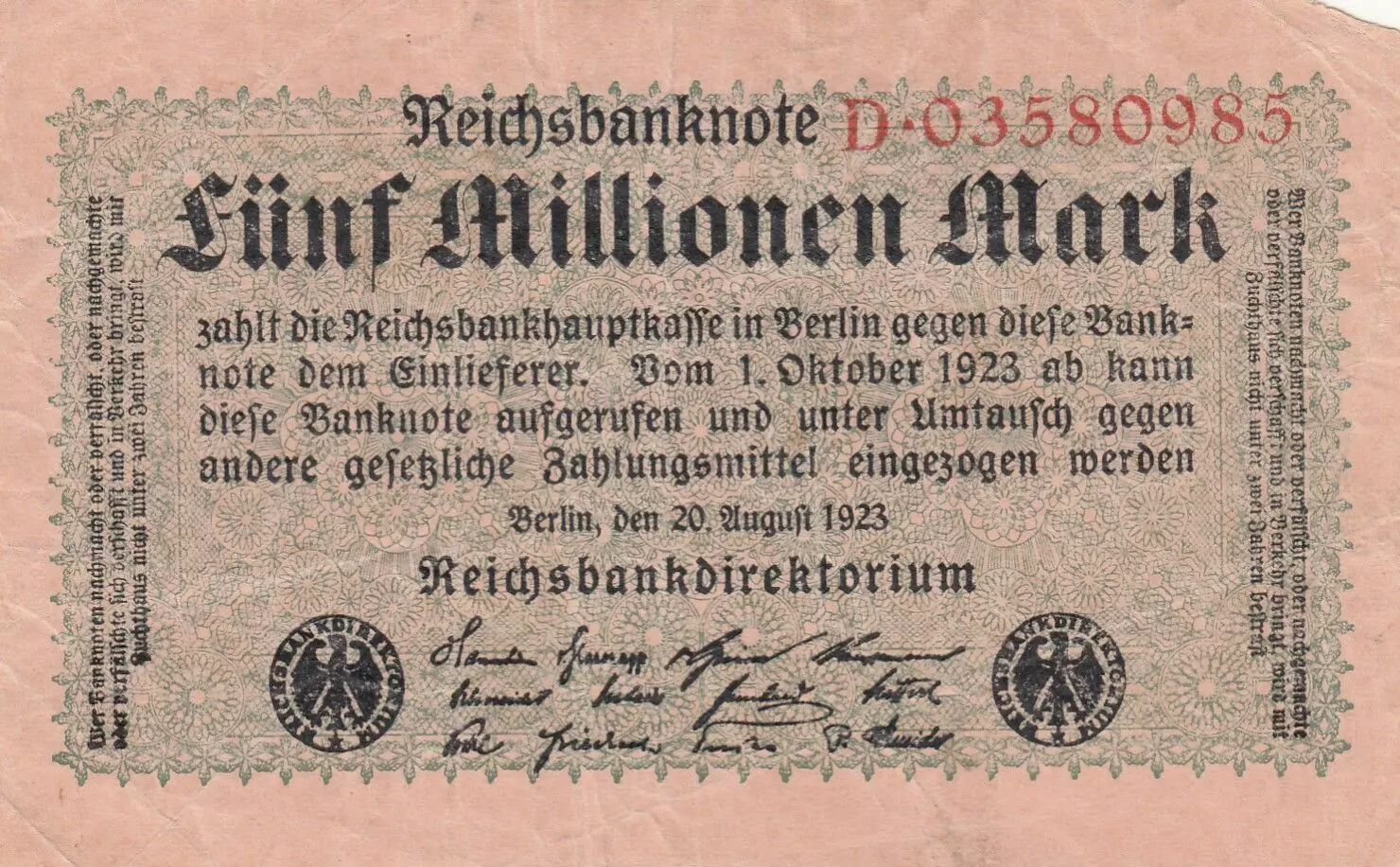 Billet Allemagne 5 Millionen mark - Reichsbanknote - Série D - 1923
