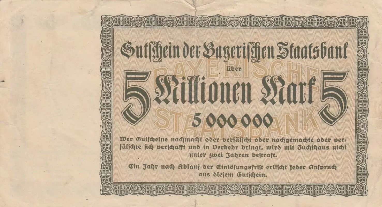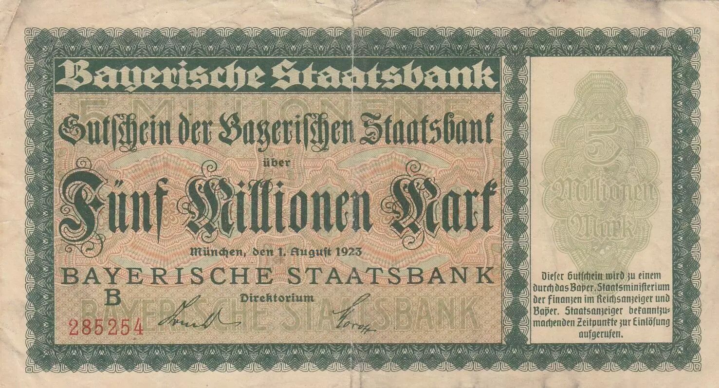 Billet Allemagne 5 millions de Mark - Ville de Bayern - Numéro 285254 -1923