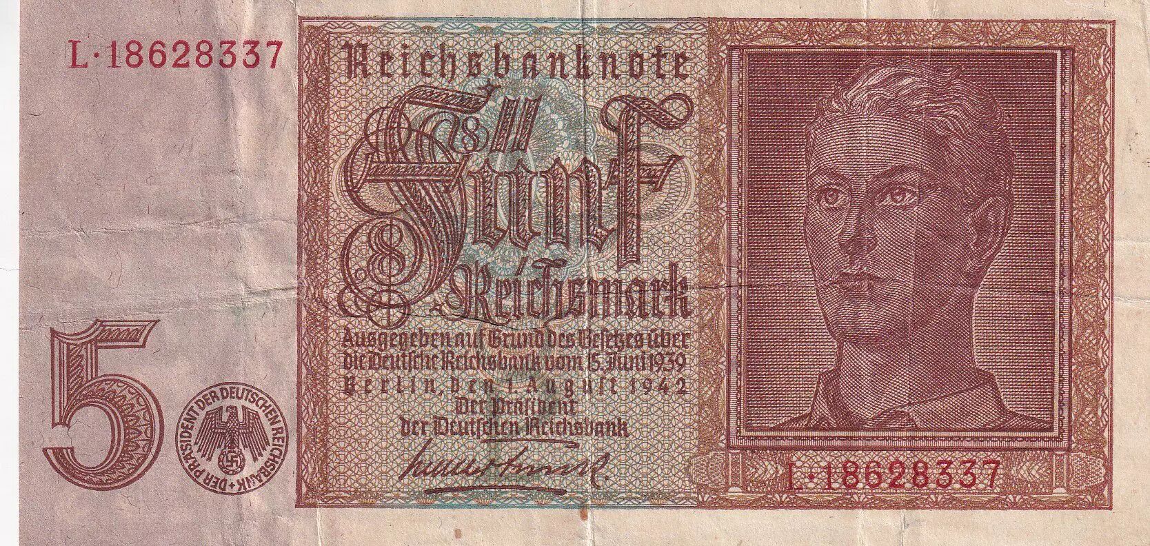 Accueil > Archivage > Allemagne 5 Reichsmark - Jeune homme - 1942 - Lettre L - P.186
