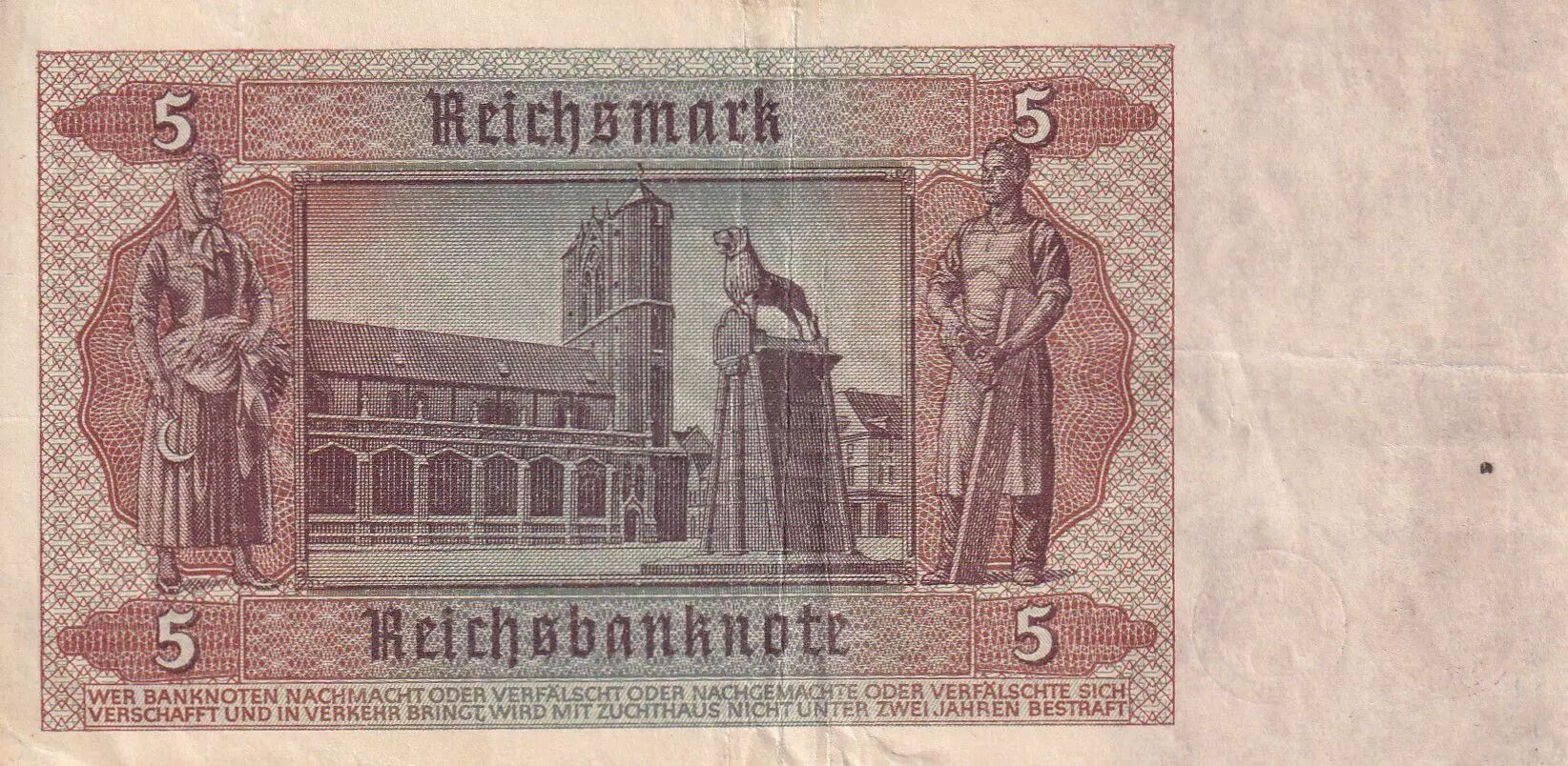 Billet Allemagne 5 Reichsmark - Jeune homme - 1942 - Lettre L - P.186